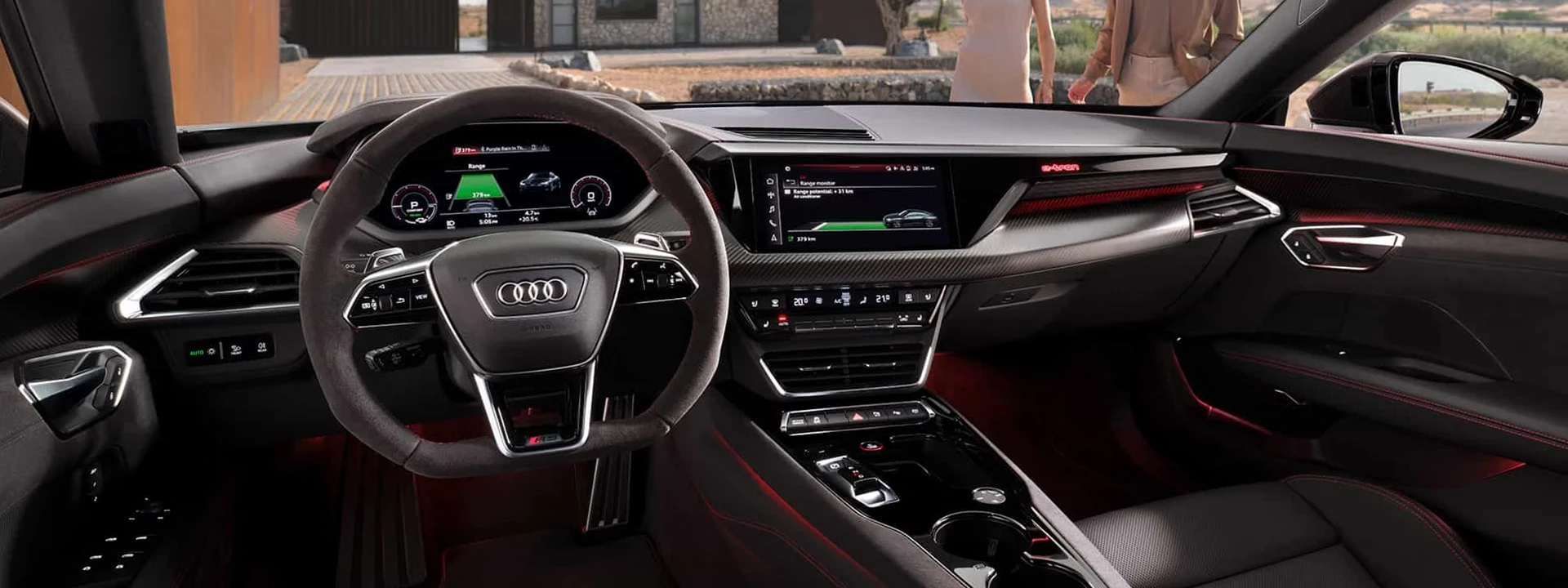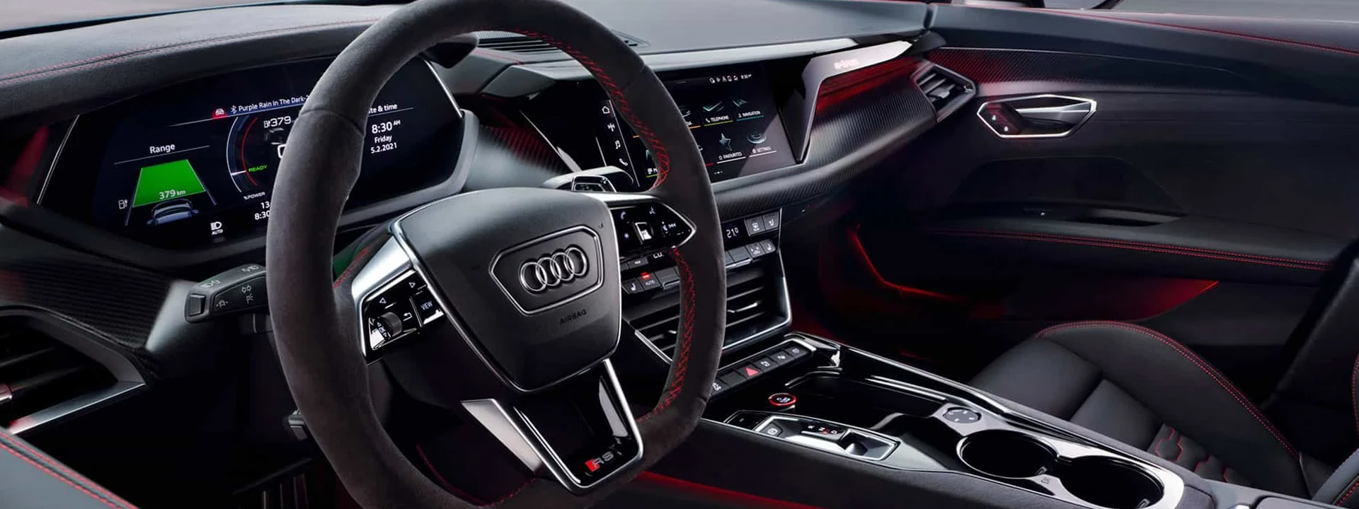 No interior do Audi RS e-tron GT, tudo está focado em um centro funcional: o banco do motorista.