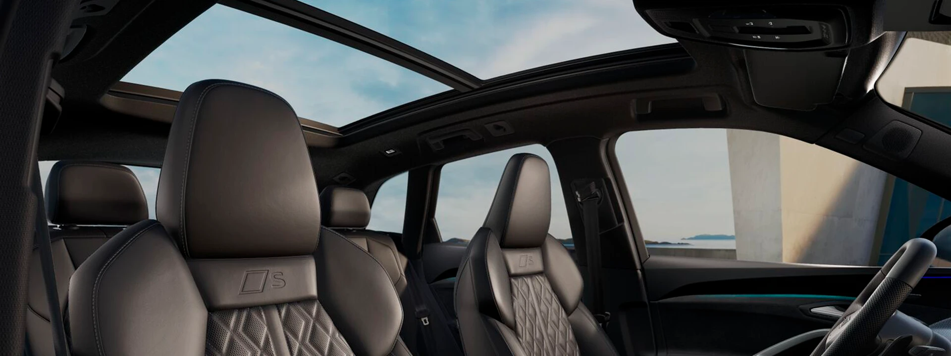 No Audi SQ5, a experiência começa antes mesmo de dirigir. Escolha entre duas opções de acabamento interno e aproveite bancos esportivos, volante em couro perfurado com alavancas de troca de marcha, pedais em aço inox e teto preto. As soleiras iluminadas com a inscrição S dão as boas-vindas ao verdadeiro espírito esportivo.